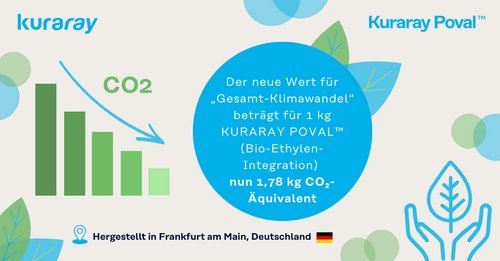Der neue Wert für „Gesamt-Klimawandel“ beträgt für 1 kg KURARAY POVAL™ nun 1,78 kg CO₂-Äquivalent.